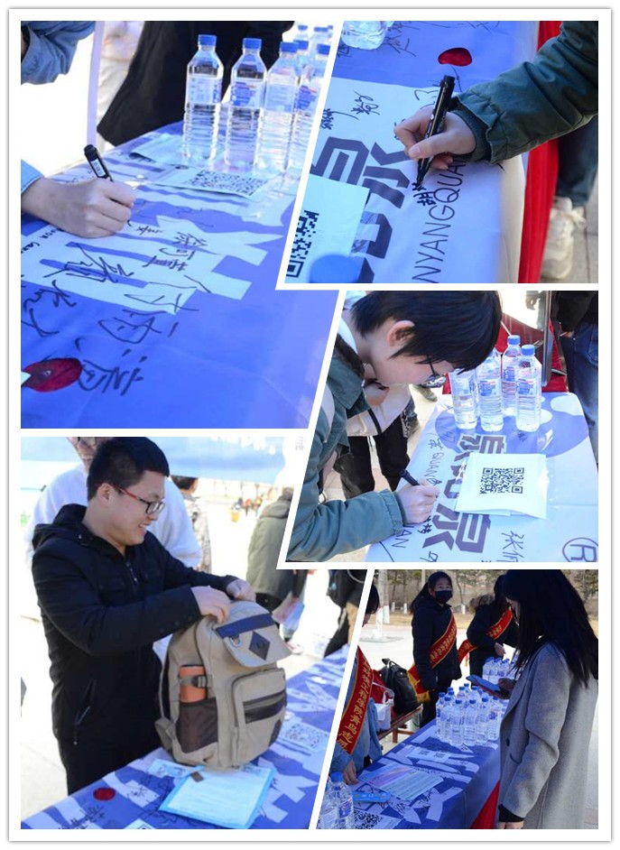 志愿者們通過(guò)科普宣傳的方式告知同學(xué)們關(guān)愛(ài)自閉癥兒童的重要性。同學(xué)們積極參與到義賣當(dāng)中,用自己的實(shí)際行動(dòng)親身參與到慈善活動(dòng)當(dāng)中,并在條幅上簽下自己的名字,留下自己獻(xiàn)出愛(ài)心的印記。