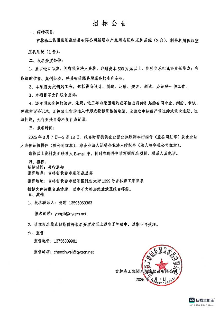 吉林森工集團泉陽泉飲品有限公司